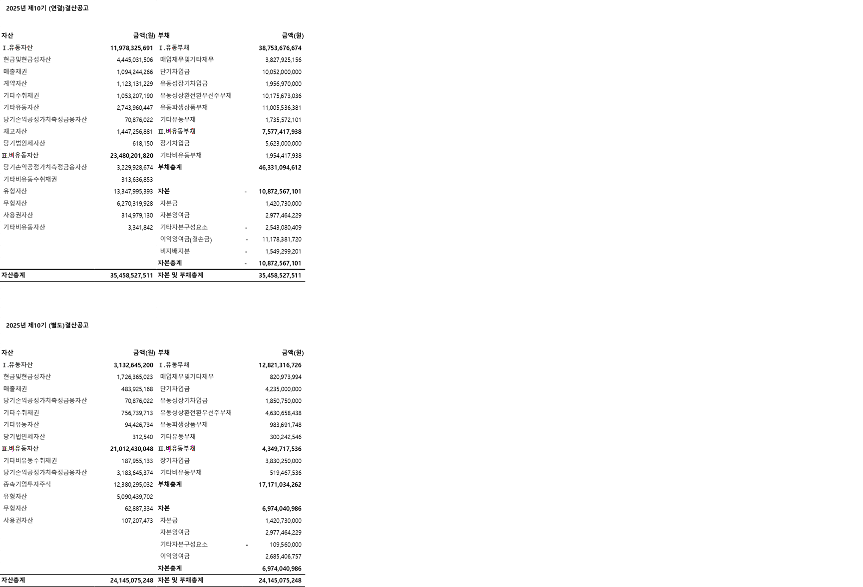 이성씨엔아이(주) 제10기 결산공고의 건